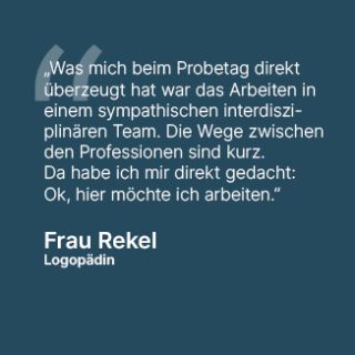 "Mir gefällt die Vielseitigkeit im Haus, die vielen Bereiche - auch in der Art und Weise, in der ich meine Arbeit machen kann: Gruppen, Einzel, Elektrotherapie und so weiter. Alles ist möglich und wir sind bestens für alle Therapieformen ausgestattet."