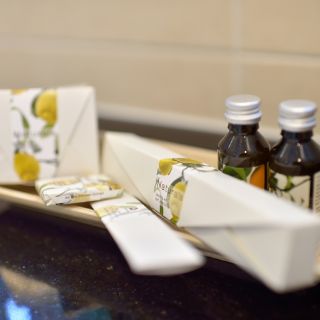 Die ebenerdige Dusche erleichtert den Einstieg. Ausgesuchte Armaturen und Ablagen sowie eine moderne Beleuchtung verleihen Ihrem Bad eine hochwertige Optik. Ein Set an Pflegeartikeln liegt für Sie bereit. Hand- und Duschtücher wechseln wir auf Wunsch. Gerne stellen wir Ihnen Bademantel und Hausschuhe zur Verfügung.