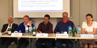 Mit dabei waren: Dr. Luzie Braun-Durlak, Kieferorthopädin und Vorsitzende des Landesfachausschusses Gesundheit der FDP Hamburg, Hauke Wagner, Mitglied im Landesvorstand der SPD Hamburg und Mitglied der Hamburger Bürgerschaft, Deniz Celik, Gesundheitspolitischer Sprecher der Fraktion DIE LINKE in der Hamburger Bürgerschaft, Dr. Bastian Steinberg, niedergelassener Arzt in Hamburg und fachverantwortlicher Dozent für Allgemeinmedizin am ACH, sowie Walter Plassmann, Vorstandsvorsitzender der KV Hamburg.