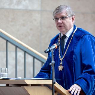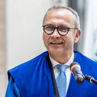 Letzterer beglückwünschte zunächst die angehenden neuen Kolleginnen und Kollegen, die sich zwischen dem Absolventen- und dem Doktorandenstadium nominell gerade „in einer Zeit des Häutens“ befänden. In seiner nachfolgenden launigen Rede fand er viele Vergleiche zwischen dem Medizin-Studium an der Semmelweis-Universität und am ACH sowie der aktuell stattfindenden Tour de France mit ihrer herausragenden Bedeutung, ihrer Tradition, ihrer Faszination, dem gelebten Teamgeist sowie ihren unterschiedlich anstrengenden Etappen. „Außerdem endet die Tour nie dort, wo sie gestartet ist – genau wie bei Ihrem Studium - , und das Ziel liegt beide Male auf dem Prachtboulevard einer europäischen Hauptstadt – den Champs Élysées in Paris sowie Unter den Linden in Berlin“, so der Dekan. Er schloss mit den pathetischen Worten: „Die Medizin, ja die Gesellschaft braucht Euch!“
