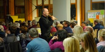 Mit einem Sortiment ganz verschiedener Flöten war Hans-Jürgen Hufeisen nach Göttingen gekommen, und auch er faszinierte die Zuhörenden mit seinem Blockflötenspiel: Unglaublich seine Virtuosität, wie rasend schnell sich seine Finger auf diesen kleinen Instrumenten bewegen konnten und was für Töne er seinen Flöten entlocken konnte. Und berührend war die meditative Schlichtheit, mit der er zum Schluss das Volkslied „Guten Abend, gute Nacht“ auf seiner Flöte spielte, bis nach und nach auch die Zuhörenden mit einstimmten und das Lied mitsangen oder mitsummten.