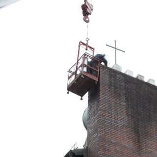 „Und wenn der Kran dann schon mal steht, nutzt man das natürlich und macht gleich noch eine Kaminsanierung mit, und die herrliche Aussicht von dort oben gibt’s noch gratis mit dazu “, fügte Max Besl, der Chef der Haustechnik, noch mit einem Augenzwinkern an.